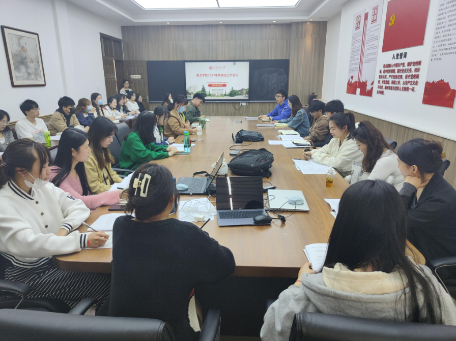 为深入贯彻落实习近平总书记关于青年工作的重要思想,紧紧围绕学习贯彻党的二十大和二十届一中、二中全会精神主题主线,认真落实学院党委和上级团组织的工作部署。美术学院于3月8日在办公楼三楼党员活动中心召开2023年共青团工作会议。学院团委负责人、研究生会、学生会各部室负责人等参加会议。