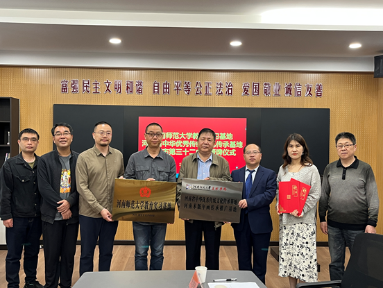 为深入贯彻落实党的二十大精神,弘扬中华优秀传统文化、为师范专业学生实习实训和就业工作搭建高质量平台,4月18日上午,美术学院院长陈巍、副院长王霄等一行4人,赴新乡市第三十二中学举行伟德官网下载苹果版教育实习基地、河南省中华优秀传统文化传承基地签约及授牌仪式。新乡市教育局副局长张祥海、三十二中学校长王崇保、副校长孟林、教务处主任张继军、教师代表翟晓辉出席签约仪式。