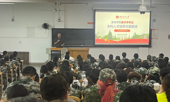 为帮助2023级新生更好地了解美术学院5个本科专业人才培养方案与专业特色,合理规划本科阶段的学习任务。9月21日下午,美术学院在新五五四101教室举办2023级本科生人才培养方案解读会。美术学院副院长王霄、相关专业负责人、教学秘书、2023级本科生辅导员及2023级全体本科生出席会议。会议由2023级辅导员黄清主持。