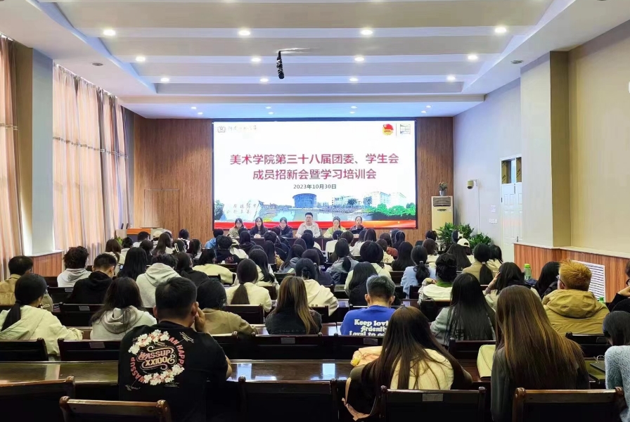 为进一步提高美术学院学生会各成员的积极性、主动性,提升团队凝聚力与向心力,美术学院于10月30日在崇美楼三楼多媒体教室开展第三十八届团委、学生会成员招新暨学习培训会,学院团委、学生会及各年级主要学生干部参加会议。会议由团委书记张鹏飞主持。