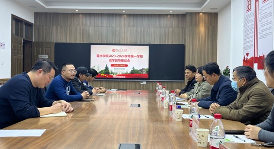 12月7日下午,美术学院2023-2024学年第一学期教学督导座谈会在学院党员活动室召开。教务处副处长姜玉钦、校级教学督导赵振、李晓红、牛明铎、焦志丽,美术学院党委副书记单一飞、副院长王霄、学院同行督导、教研室主任、教学秘书和教务员参加会议。座谈会由王霄主持。