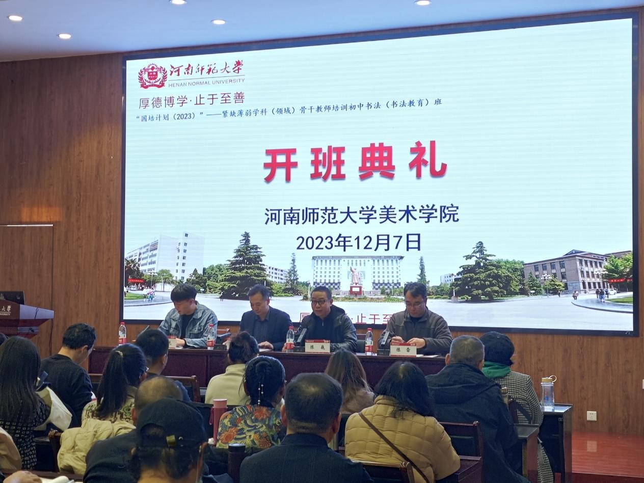 12月7下午2:30,“国培计划(2023)”——紧缺薄弱学科(领域)骨干教师培训初中书法教育班开班仪式在美术学院三楼多媒体教室举行,伟德官网下载苹果版美术学院党委书记华锋,院长陈巍,社会服务工作秘书陈雷,学科班主任陈雷(兼)、张振东,生活班主任李胜利、张靖参与了此次开班典礼,由副院长张笑乾主持。