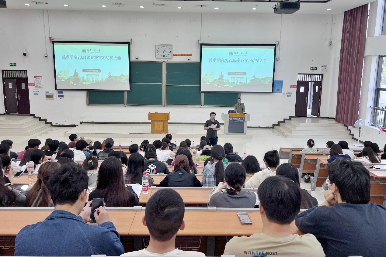 为引导学生正确认识专业实习的目的和意义,扎实推进学院2021级本科专业实习工作,59日下午,美术学院于文昌楼127教室召开2021级本科专业实习动员会。教务处副处长贾光瑞、美术学院党委副书记单一飞、副院长王霄、校内实习指导教师代表、年级辅导员、绘画专业和设计学类专业全体本科生参加了此次动员大会。会议由美术学院创作与实训部主任徐智川主持。