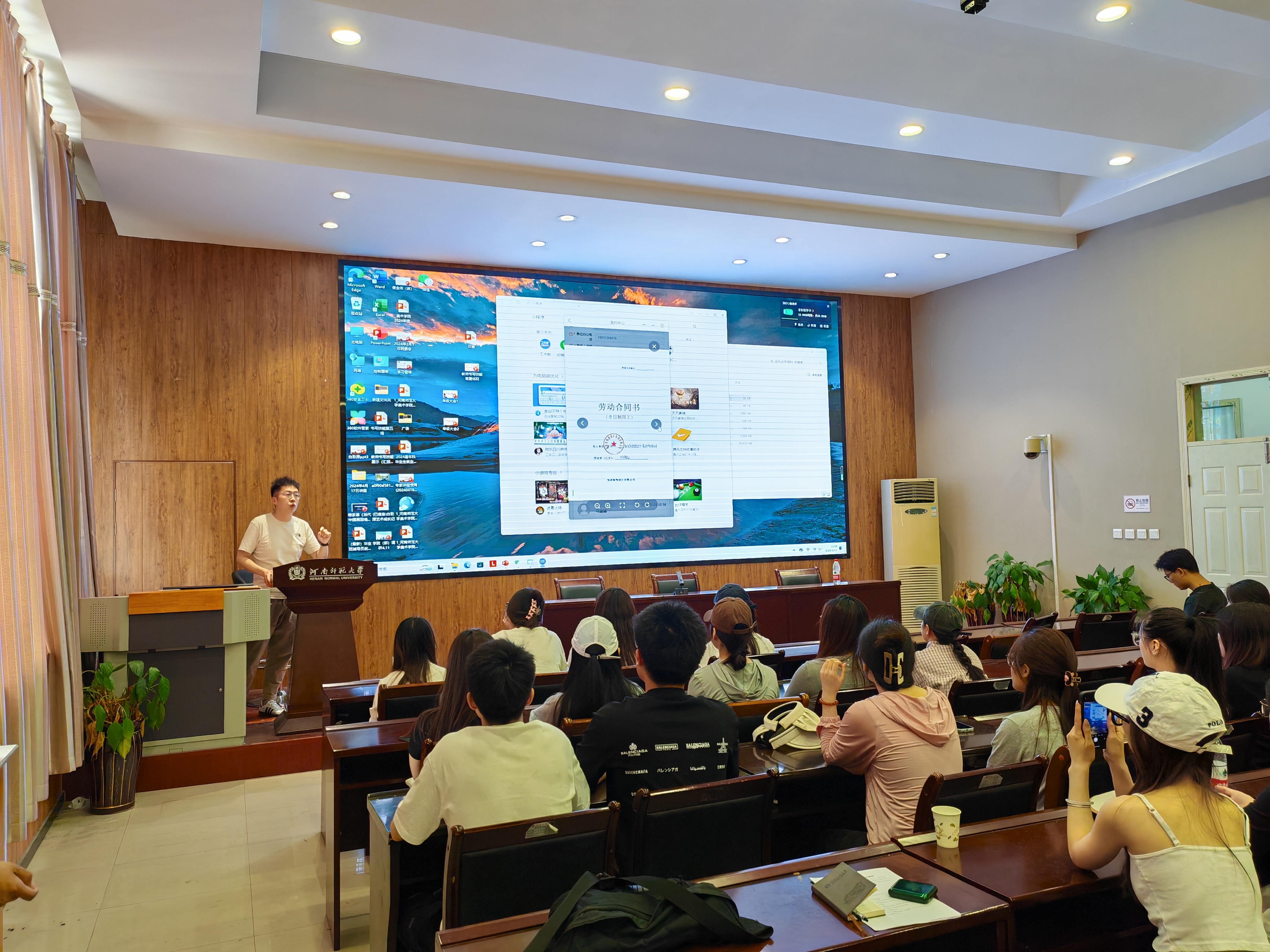 会议上,张鹏飞结合自身经验,围绕今年大学生就业形势、毕业生就业观念及就业过程中应注意事项等内容为同学们认真讲解和深入指导,详细解读了不同岗位对毕业生应具备技能的实际要求,帮助学生走出常见的就业思想误区,为大家提供了多种就业新思路。同时提醒同学们认清形势,合理规划个人的生活和时间,明确自身的求职目标和生活愿景,主动出击、诚信就业、合理签约、安全就业。希望毕业生们能够正确认识自我,准确定位,科学制定职业发展规划,主动适应社会。随后,张老师详细地为学生们讲解并操作工作啦系统,使学生们更加直观的了解并使用系统。
