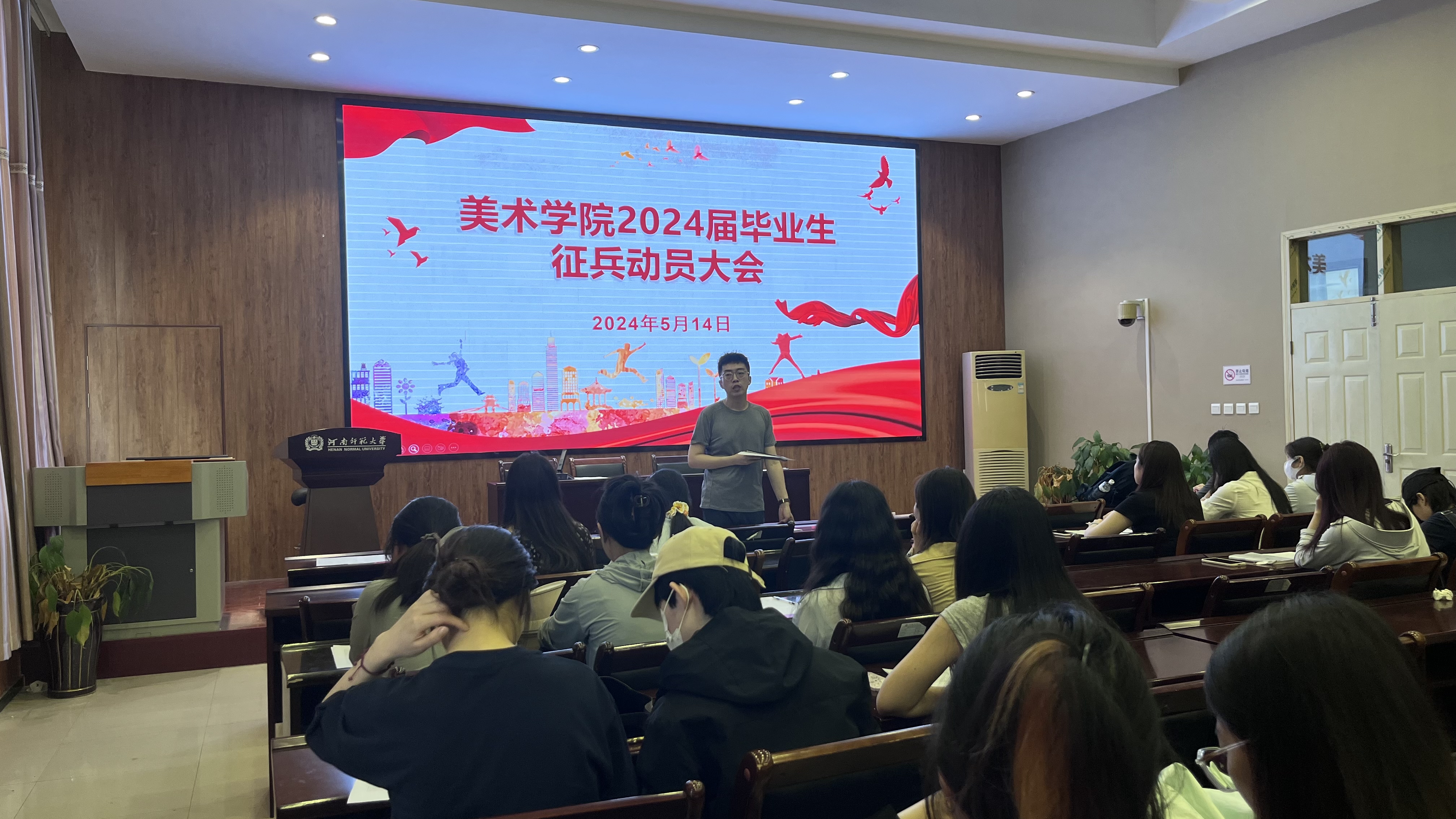 为做好2024届毕业生入伍政策宣传工作,鼓励毕业生积极参军入伍,美术学院于5月14日在崇美楼三楼多媒体教室面向本科毕业生开展征兵政策讲解大会,毕业班专兼职辅导员及全体毕业生参加会议。