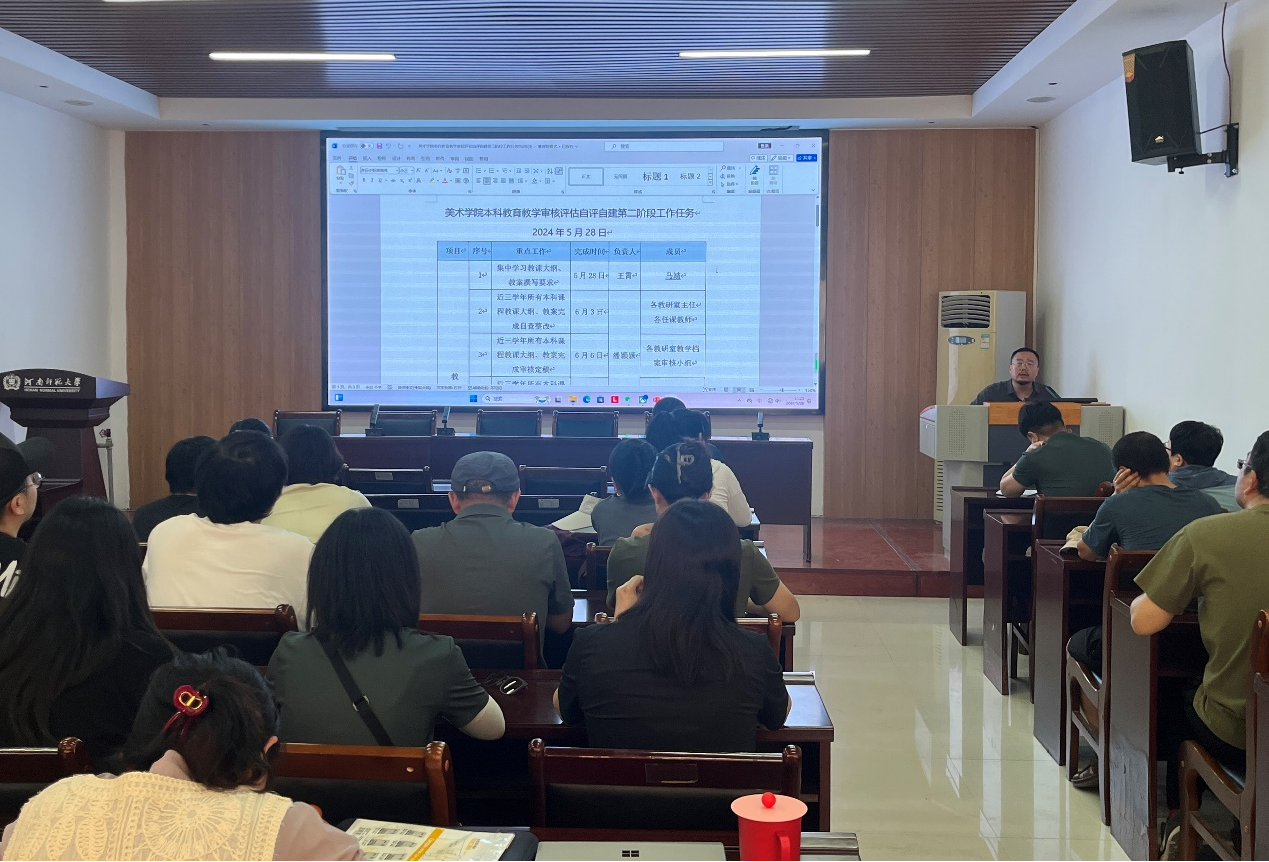 为进一步推进落实学院本科教育教学审核评估自评自建工作,按照校评估工作办公室下发的《关于进一步优化本科教育教学审核评估自评自建工作的通知》要求,5月28日下午,美术学院在学院会议室召开了本科教育教学审核评估自评自建第二阶段工作推进会,学院领导班子成员及全体教职工参加了此次会议。会议由副院长王霄主持。