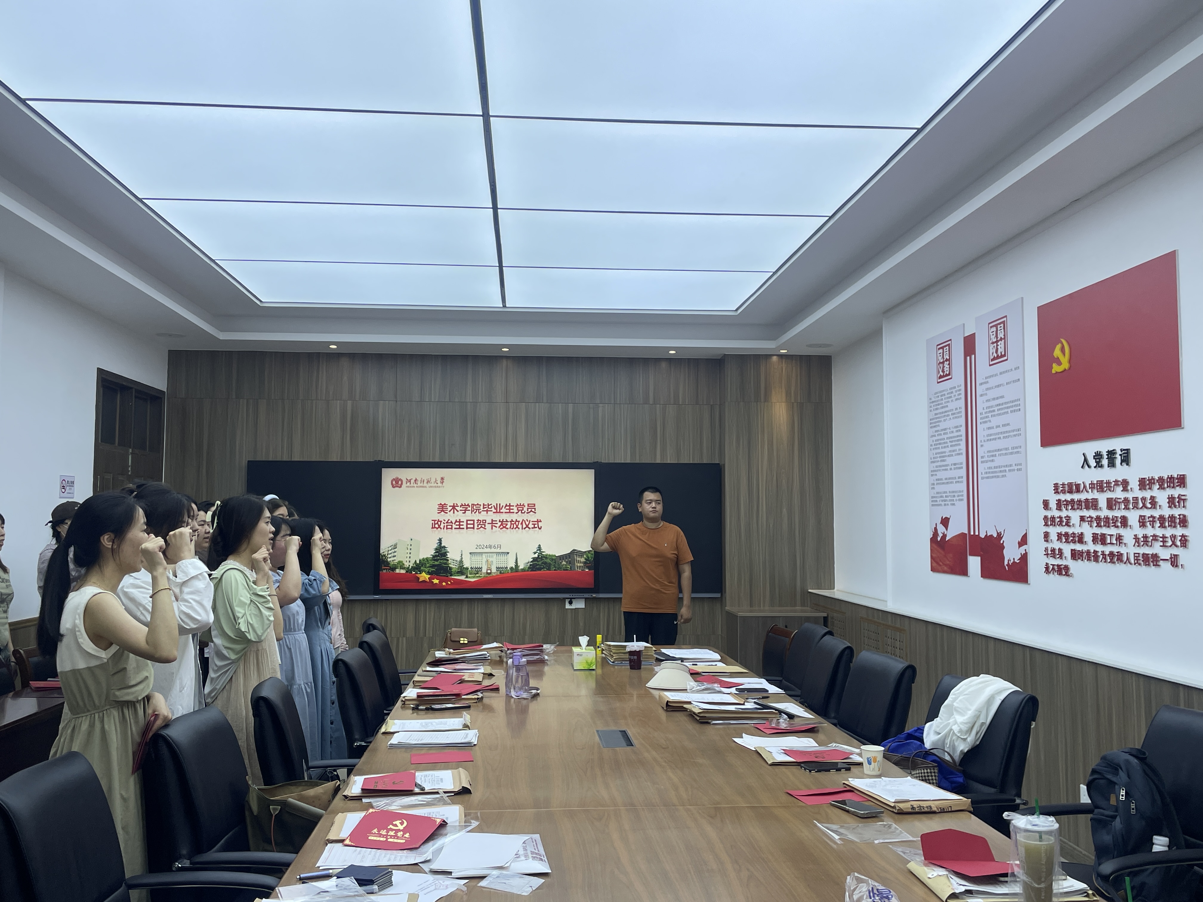 为进一步加强毕业生党员教育,坚定理想信念,以饱满的青春热情、良好的精神风貌踏入人生新征程。6月4日,美术学院“艺心向党”实践育人党支部联合研究生第二党支部开展“五个一”毕业生党员教育活动。学院全体研究生毕业生党员和本科生党员代表参加活动,活动由学院党委组织员徐宪主持。