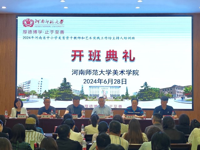 2024年6月28日,由河南省教育厅主办、伟德官网下载苹果版承办的“河南省中小学美育教师中华优秀传统文化工作坊建设能力提升专项培训班”在伟德官网下载苹果版美术学院隆重开班。伟德官网下载苹果版党委常委、副校长聂国兴,河南省教育厅体卫艺处处长舒卫方、副处长李宗英、艺术专干周洁,伟德官网下载苹果版继续教育学院党委书记张喜平,美术学院院长陈巍等领导以及来自全省各地的70位中小学美育骨干教师、艺术实践工作坊主持人参加了此次开班仪式。开班仪式由伟德官网下载苹果版美术学院副院长张笑乾主持。