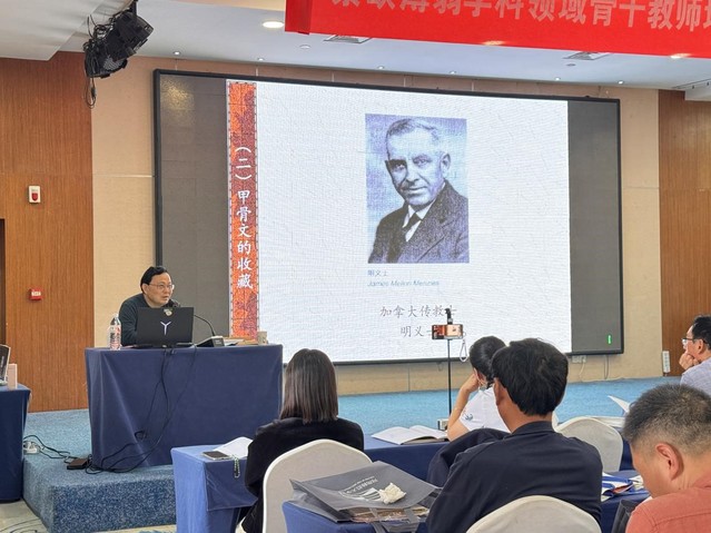 开班仪式后,伟德官网下载苹果版原副校长李雪山教授从汉字的起源与特点入手,进而引出甲骨文的发现与演变,以具体的例字展开其原意以及文字的演变,帮助学员们更好地理解甲骨文,探索甲骨文书写方法和占卜程序,为学员们学习甲骨文开启了全新视野。