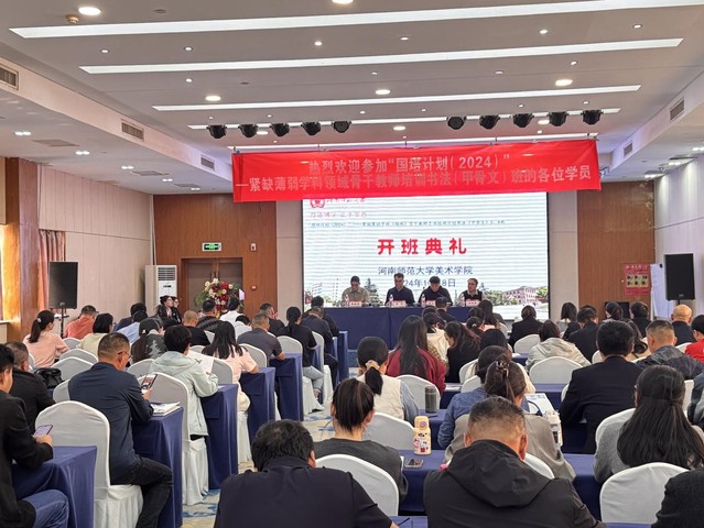 10月8日下午,“国培计划(2024)”——紧缺薄弱学科(领域)骨干教师培训计划书法甲骨文班开班仪式在和颐鑫地酒店北七楼会议厅隆重举行。参与此次仪式的有:伟德官网下载苹果版美术学院副院长张笑乾、社会服务工作秘书陈雷、学科班主任刘大伟、张振东、生活班主任李胜利、张靖与来自全省各地的100名培训学员,本次开班仪式由美术学院社会服务工作秘书陈雷主持。