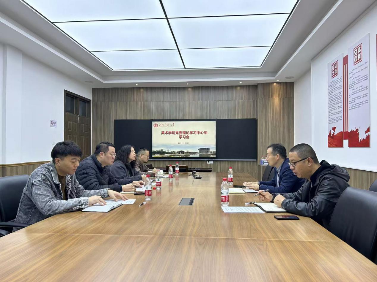 11月14日,美术学院党委理论学习中心组围绕校党委部署党纪学习教育工作会议精神召开学习会议。学院党委委员参加会议,会议由院党委书记华锋主持。会议还学习了全国民族团结进步表彰大会精神、习近平总书记在省部级主要领导干部学习贯彻党的二十届三中全会精神专题研讨班和二十届中共中央政治局第十七次集体学习的重要讲话。