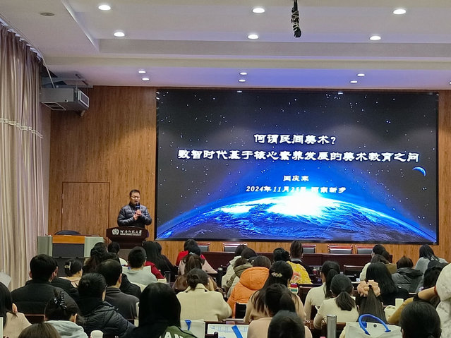开班典礼后,闫庆来教授为学员们讲授了“民间美术的特点与数智时代基于核心素养发展的美术教育”,从对美术教育的目的讲解,到民间美术的分类与特征,再引申至大美术资源观,学员们能够全方位感受民间美术的魅力,为学员们打开新的美术视野提供了重要的支撑。下午,滑侨新副教授为学员们讲授了“文创!何为创?”,通过丰富案例,阐明了文创的核心驱动力,讲述了文创产品背后的创意逻辑,深化了对文创产品创新路径的理解,以新颖视角挖掘文化价值,为学员老师们提供了宝贵启示,激发了无限的创意火花。