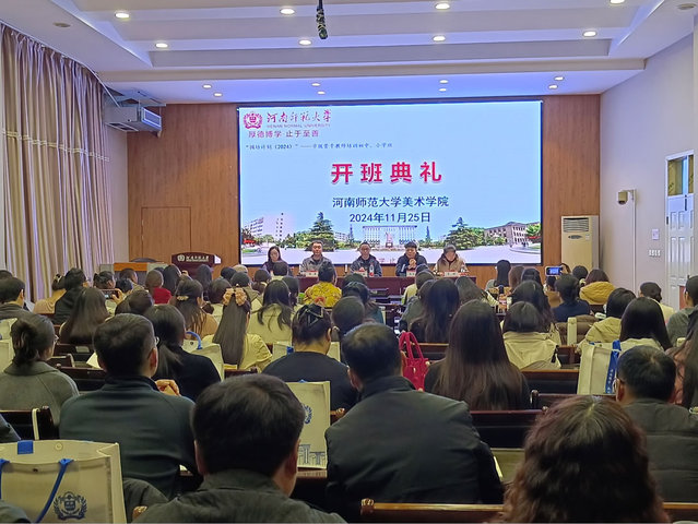 11月25日,由教育厅主办,伟德官网下载苹果版美术学院承办的“国培计划(2024)”——市级骨干教师提升项目中小学美术培训班开班仪式在美术学院多媒体报告厅举行。伟德官网下载苹果版美术学院院长陈巍、副院长张笑乾、社会服务工作秘书陈雷、学科班主任董明慧、马燃,生活班主任李胜利、张靖,以及来自全省各地的100位培训学员共同参加了本次开班典礼,仪式由美术学院副院长张笑乾主持。