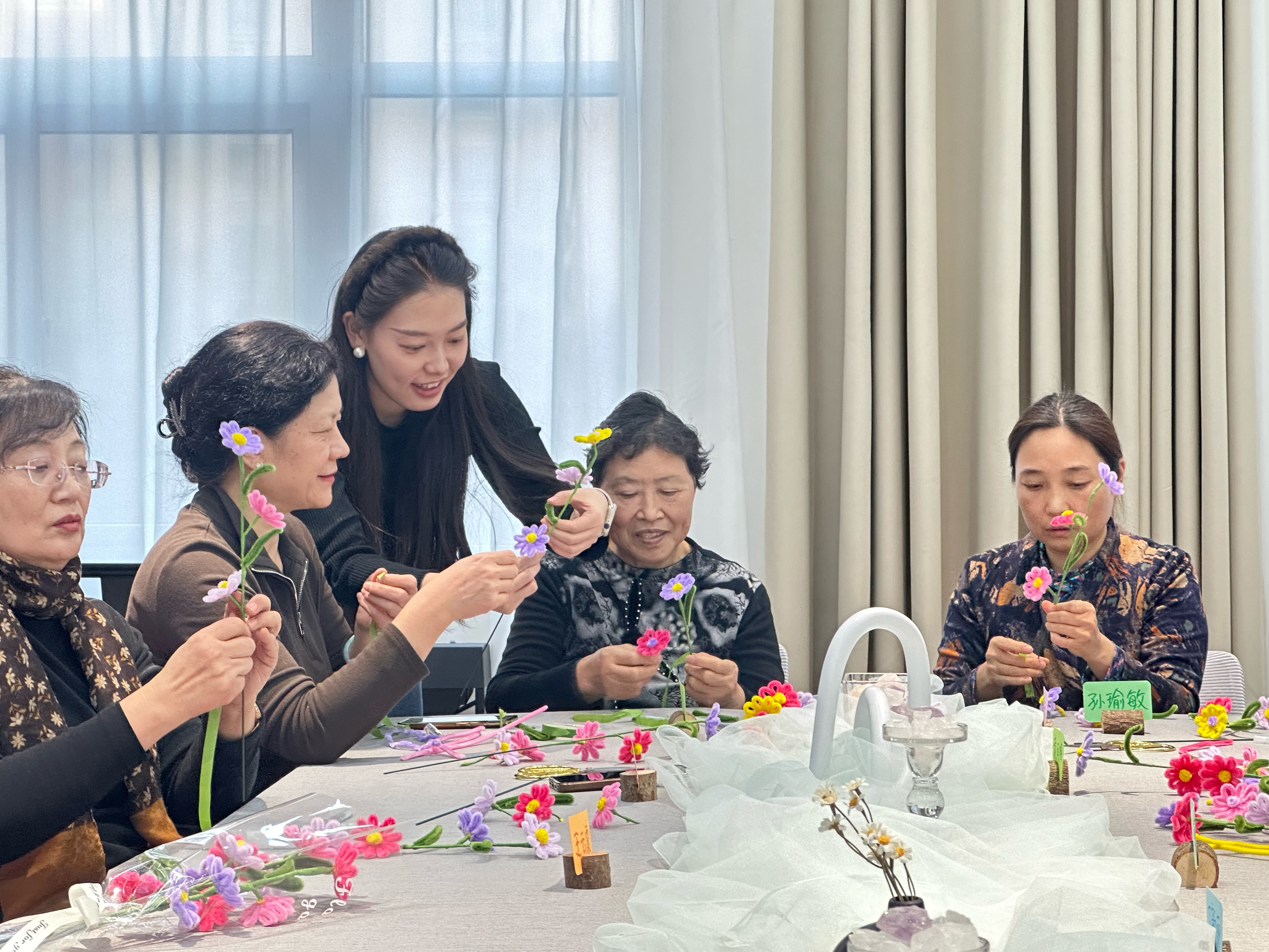 为弘扬传统文化,丰富广大退休教师精神文化生活,进一步树立敬老、爱老、助老、为老风尚,12 月 17 日至 18 日,美术学院“艺暖桑榆”志愿服务队与德润文化艺术交流中心开展《非遗绒花——扭扭棒雏菊》课程活动,为退休的阿姨们送上了一份独特的文化盛宴,充分彰显了尊老敬老的美好品德。