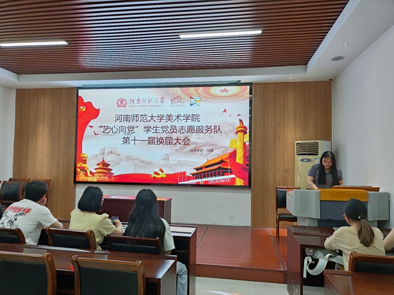 为推动党员志愿服务队的创新发展,更好地发挥服务学校、服务学生的主体作用,进一步加强美术学院学生干部队伍建设。6月11日,美术学院“艺心向党”学生党员志愿服务队换届大会在办公楼三楼会议室顺利举行。指导教师马倩及全体成员参加会议,主席团成员马梓含主持。