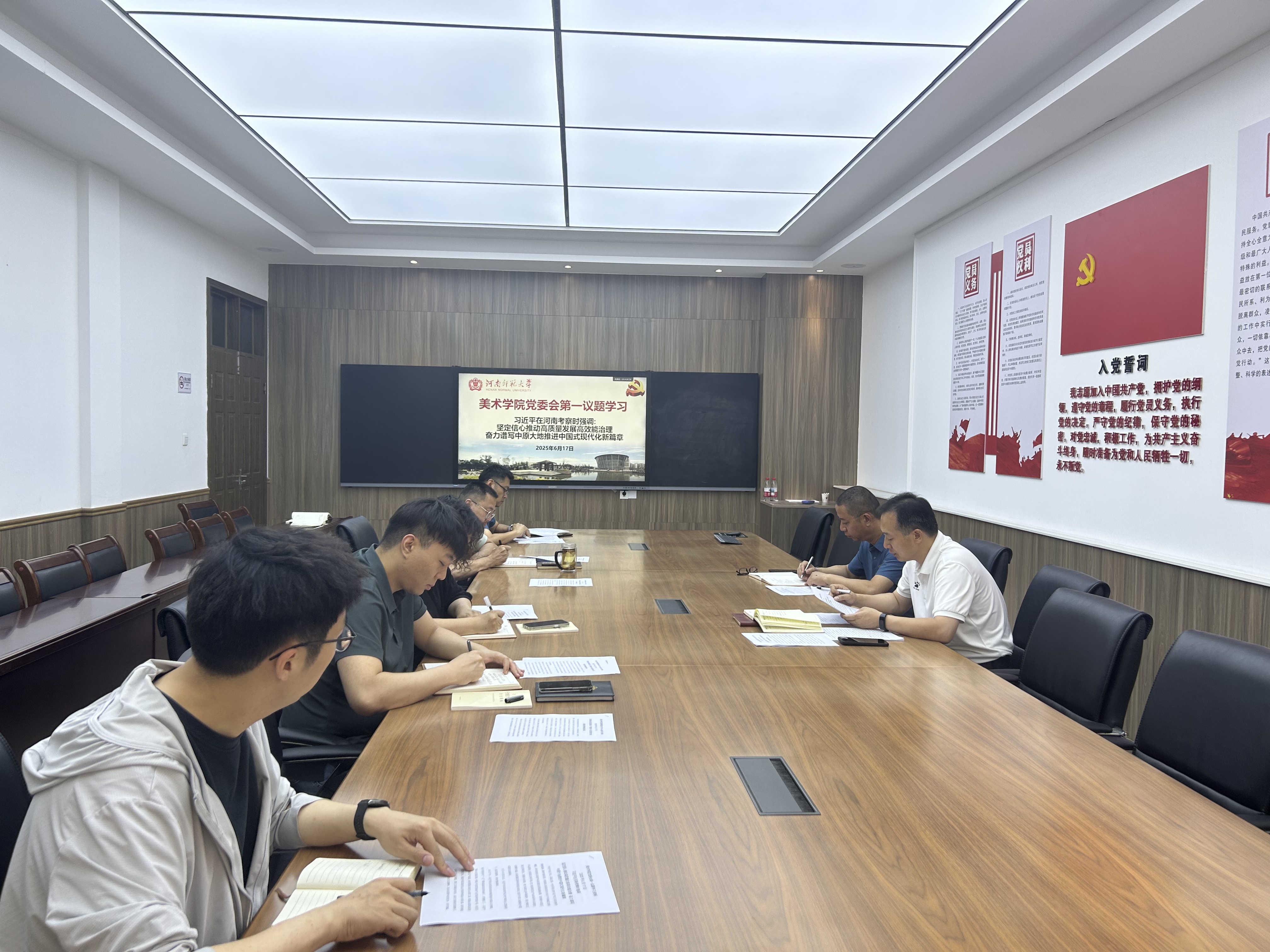 6月17日上午,美术学院党委在党员活动室召开专题党委会,深入学习贯彻习近平总书记在河南考察时的重要讲话精神。会议由院党委书记华锋主持,全体党委委员参加学习研讨。