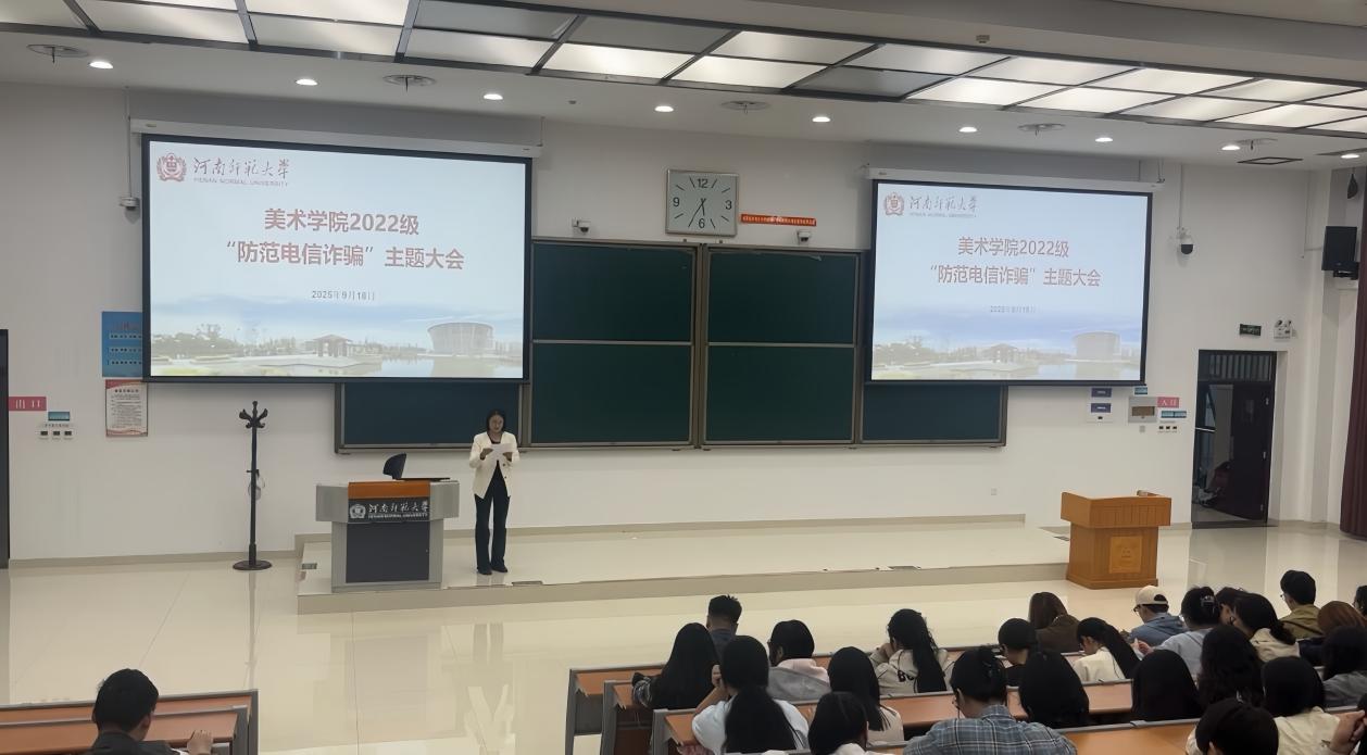 为提高学生的防范意识,守护学生的财产安全。9月18日,美术学院在文昌楼302教室为2022级毕业生召开了“防范电信诈骗”主题大会。会议由2022级辅导员马倩主持,2022级全体学生参加。