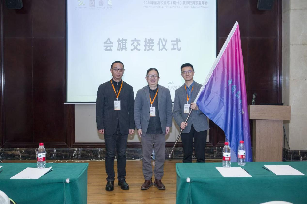 闭幕式上,各分论坛评议人就专题讨论成果进行了总结汇报。河南大学美术学院院长席卫权对“AI驱动下的教师角色重构”议题组的讨论进行了梳理与点评;南京财经大学艺术设计学院副院长许蚌总结了“课程体系的重构与伦理挑战”议题组的核心观点与争议焦点;南京师范大学美术学院教授、博士生导师张犇则就“教师发展新生态构建”议题组的研讨成果进行了分享。三位评议人的精彩总结,凝练了各分论坛的智慧结晶。会议最后,联盟发起人、南京艺术学院艺术研究院院长顾平,伟德官网下载苹果版美术学院院长陈巍,云南师范大学美术学院院长刘连杰进行了“中国高校美术(设计)教师教育联盟年会”的会旗交接,标志着年会承办单位的顺利过渡。