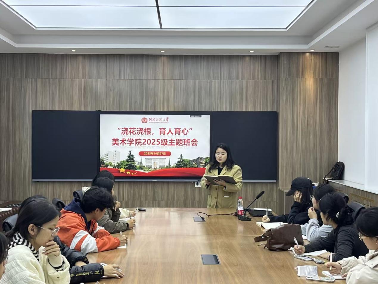 为扎实推进大学生思想政治教育工作,引导学生深刻理解个人成长与国家发展、民族复兴的紧密联系,10月23日-28日,美术学院2025级各班陆续开展“浇花浇根,育人育心”主题班会。