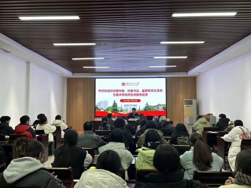 12月14日下午,校党委常委、纪委书记、监察专员王玉良在美术学院办公楼会议室为美术学院师生讲授思政课。学...