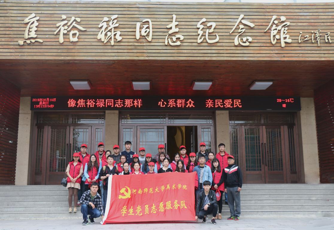 为弘扬焦裕禄精神,纪念焦裕禄逝世五十一周年,更好的发挥学生党员志愿服务队的模范带头作用。5月10日,美术学院党员志愿服务队赴兰考参加“弘扬焦裕禄精神、践行四项工作机制”书画展活动,并组织参观了焦裕禄纪念馆和故居,学习体会焦裕禄精神,向焦裕禄同志致敬。
