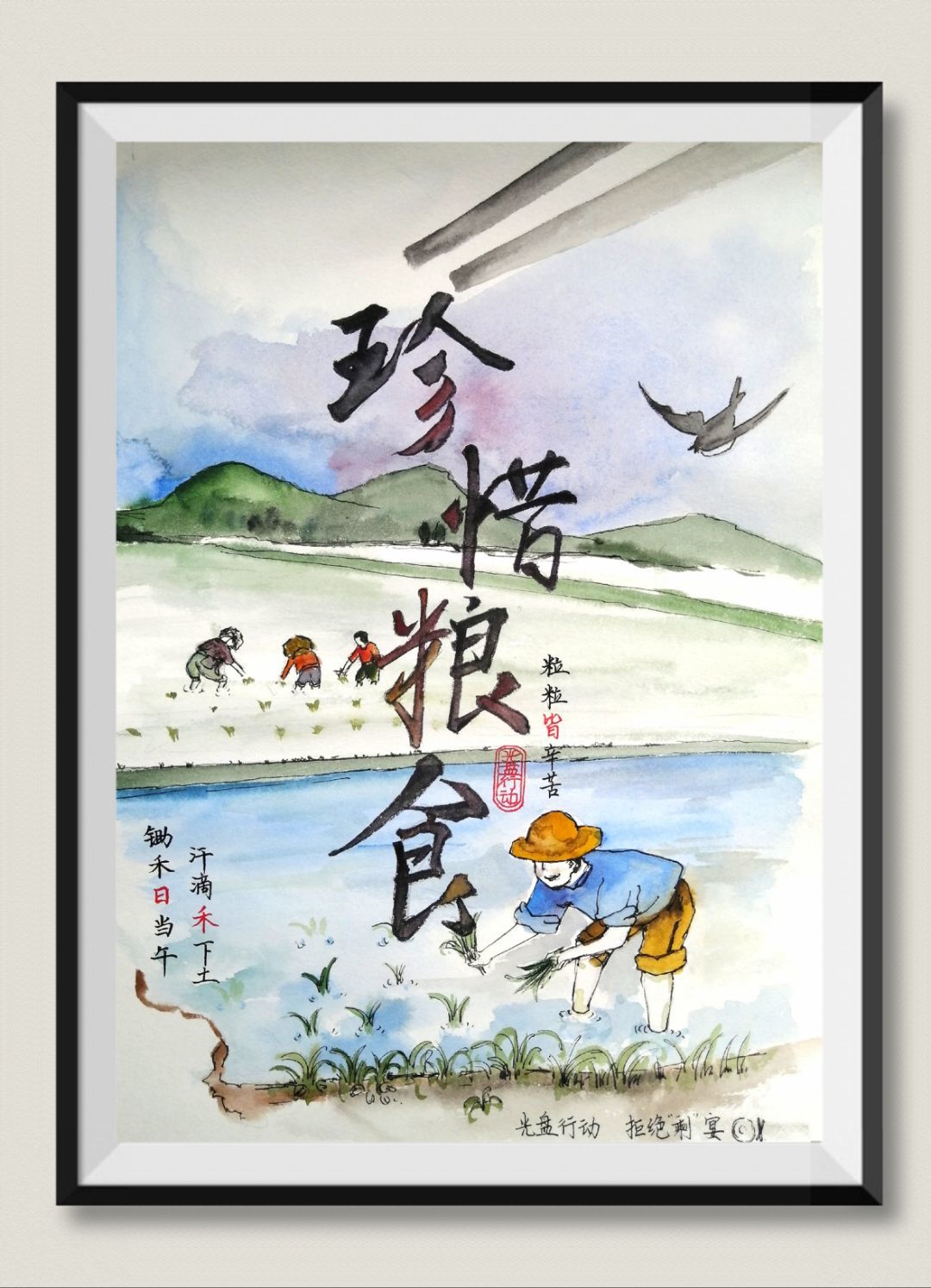 本次活动在同学们的殷切期待中拉开帷幕。活动期间,参与者紧紧围绕“光盘行动,拒绝剩宴”的活动主题,利用手中的画笔、数位板等多种形式进行创作,以艺术生的独有方式和情怀体现师大学子厉行节约、拒绝浪费的良好风气。参与者态度认真,创意新颖,诠释自己对节约粮食、文明就餐的深刻理解。活动后期,美术学院创艺汇评选出优秀作品并在美院进行宣传展示。