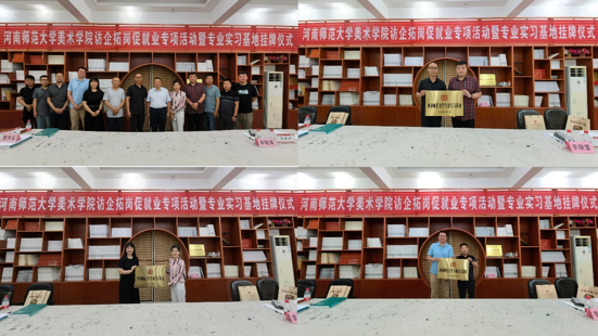 为深入贯彻落实教育部、教育厅和我校关于开展高校访企拓岗促就业专项行动的工作部署和要求,6月24日上午,美术学院党委书记孙红艳、院长陈巍带领学院相关工作负责人赴新乡美术馆,联合我市5家企事业单位集中开展“访企拓岗促就业”调研座谈活动,并进行专业实习基地签约授牌,会议由美术学院副院长王霄主持。