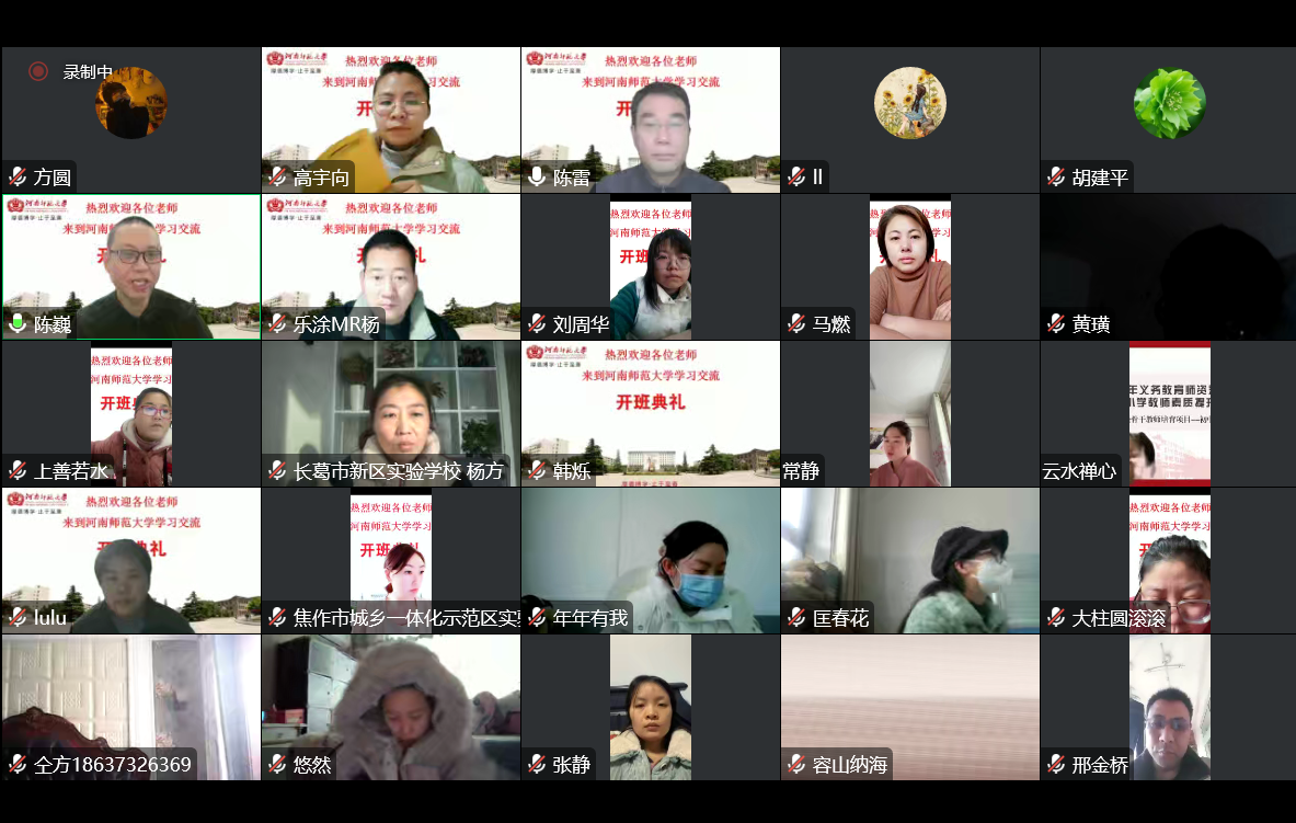 本次培训为积极落实疫情常态化防控工作部署,开班仪式与专家授课采取“线上会议”的方式进行。陈巍院长向大家简要介绍了学校、学院以及此次培训课程设置的情况,虽然是线上课程学校和学院仍高度重视,同时也展望了本次培训的预期和目标。社会工作秘书陈雷对各位学员在疫情防控和纪律、学习方面提出了具体要求。班主任团队期望各位老师把此次培训作为完善自我、提高素质、汲取经验、推进教育教学工作的一个良好机会,确保学有所获。
