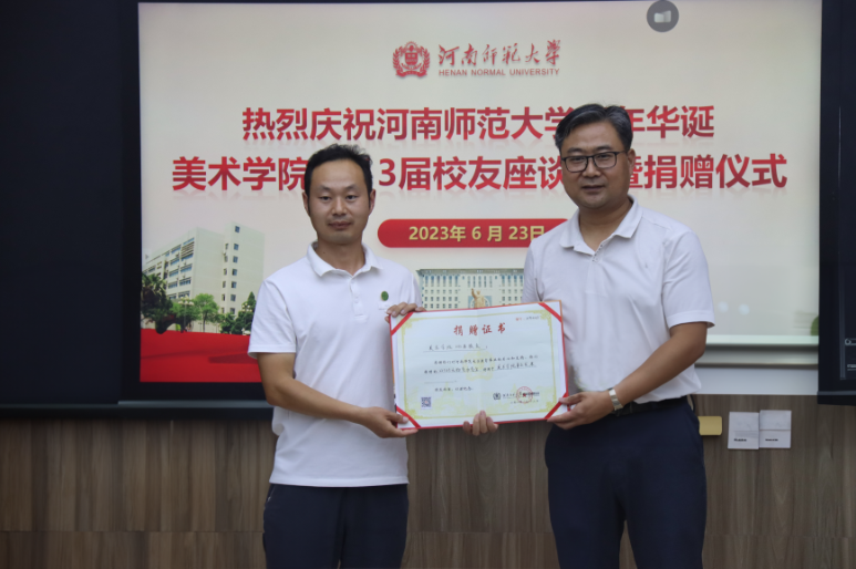 为庆祝伟德官网下载苹果版百年华诞,6月23日,美术学院2013届部分校友毕业十周年重返母校并开展座谈与捐赠活动。座谈会和捐赠仪式在美术学院党员活动室举行,发展规划处处长、校友与基金工作办公室主任苏现伐,后勤管理处副处长滕梁莹,美术学院领导班子全体成员及教师代表参加了活动,活动由美术学院副院长王霄主持。座谈会上,美术学院院长陈巍对校友的返校表示欢迎,对校友的慷慨捐赠表示感谢,并简要介绍了美术学院的发展近况。苏现伐介绍了伟德官网下载苹果版校友会的发展概况,学校校庆的筹备情况和活动方案,校友会未来的发展规划,并对校友们参加百年校庆活动发出倡议和邀约。滕梁莹回顾了作为2009级辅导员与同学们共渡的愉快校园时光,并勉励大家以梦为马踔厉前行。校友分享了毕业后的工作经历与创业过程,对母校的教育培养表示感谢,纷纷表示未来将继续奋力拼搏,不辜负母校的殷切期望。捐赠仪式上,王奇武代表2013届校友向学校教育发展基金会捐赠价值22545元的教学物资和资金,陈巍代表学校接受捐赠,苏现伐颁发捐赠证书。 (美术学院 潘颖颖/文 张鹏飞/图)