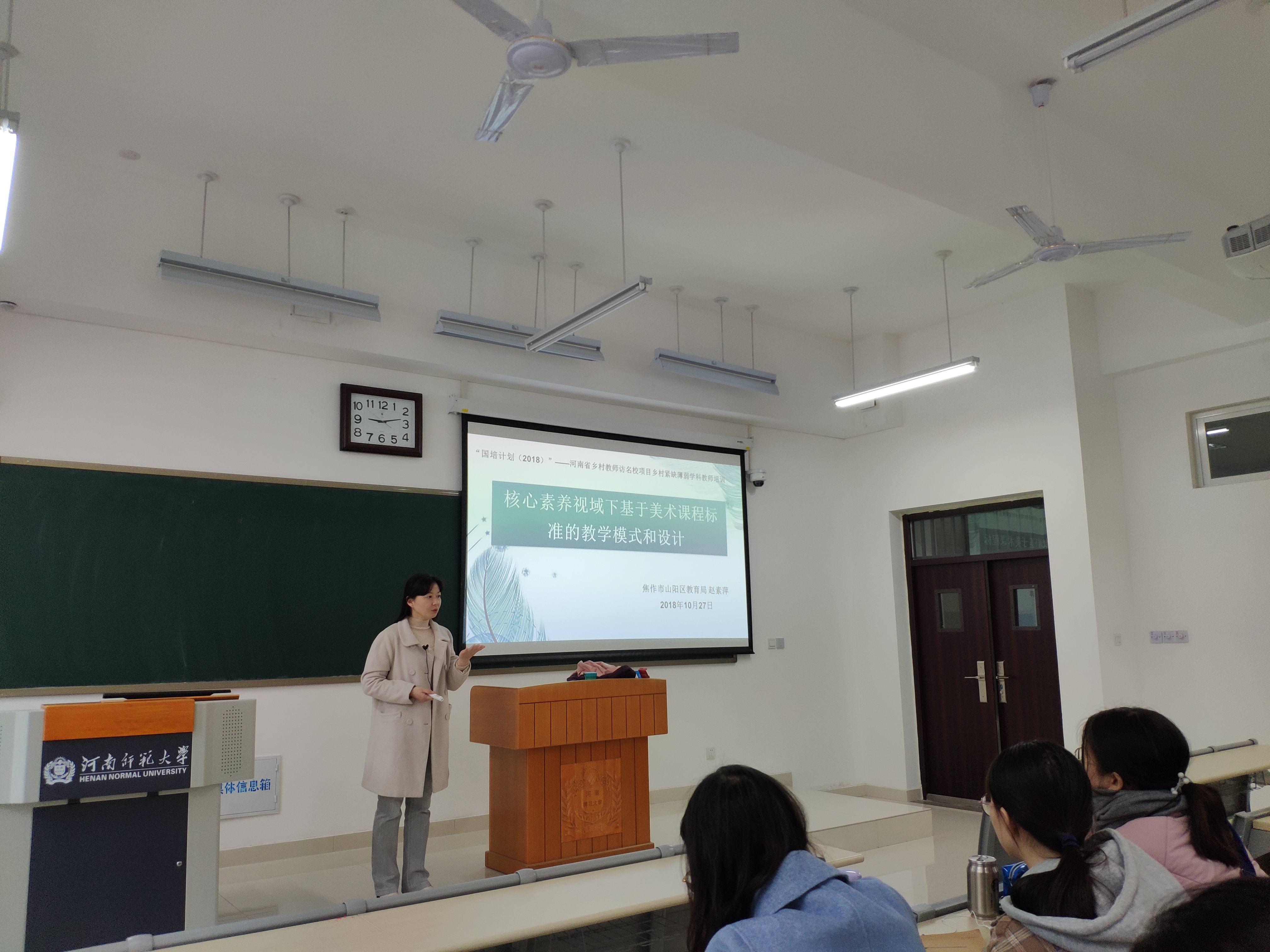 为了同学们能顺利通过教师资格证面试,11月10日上午,美术学院在东区综合楼207举办教师资格证面试交流会。公共美术教研室马燃老师携全体2016级美术学班同学参加此次活动,董明慧老师特邀国培专家焦作市山阳区教育局赵素萍老师担任本次交流活动的指导老师。课上,赵素萍老师围绕国家教师资格证面试的流程重点讲解了每个环节的准备方法和注意事项,包括候考——抽题——备课——回答规定问题——试讲(模拟上课)——答辩这六个环节,使同学明确教资面试应具体从哪几个方面着手进行准备。他从长期面试的经验出发,详细指出了每个面试环节实施中应注意的事项,以历年面试真题举例,结合当前社会热点问题,为同学们分析教师资格证面试过程的要求,总结我们在面试过程中常用的方法。并对教师资格证面试最困难的备课和试讲(模拟上课)环节进行了详细解说,赵素萍还提到,作为老师最重要的是要有爱心,平等的去看待每一个学生,“教师不仅是一桶水,更应该是源头活水”,使同学们受益颇深。随后,她又邀请了三名同学现场模拟教师资格证面试,对面试环节模拟试讲,分别指出他们的优缺点,并强调大家力争做到有针对性地,从学生、教案、课程三点出发来准备面试内容;表达语