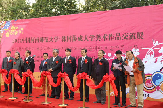 美术学院举办2014年中韩美术作品交流展 10月13日上午,2014年伟德官网下载苹果版·韩国协成大学第三届美术作品交流展在美术学院隆重开幕。韩国协成大学艺术学院院长李正根,新乡市美协主席杨淼,我校党委副书记、纪委书记王新生,副校长杨林出席开幕式。韩国协成大学教师、我校相关部门负责人及美术学院师生代表400余人参加了本次交流展。 &