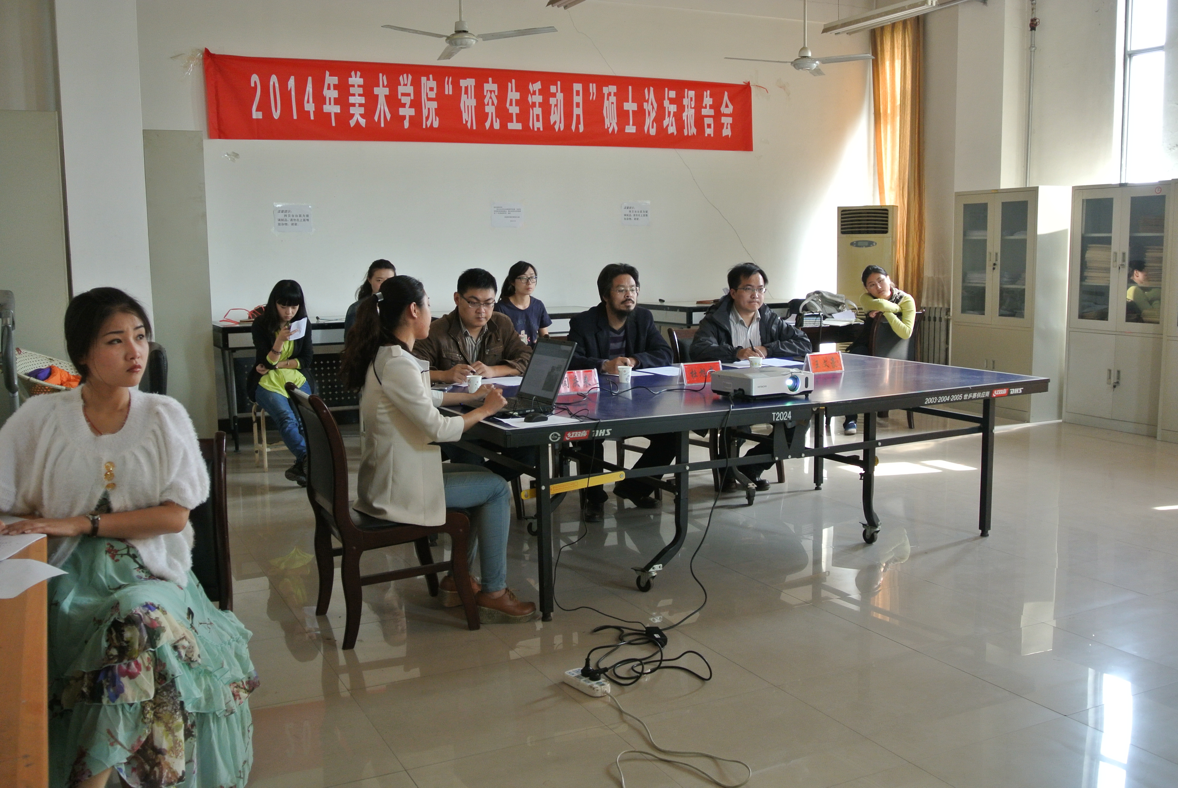 美术学院2014年研究生学术论坛圆满结束 为活跃研究生学术氛围,促进研究生学术研究能力的提高,展现研究生学术思想,我院于2014年4月29日9点在美术学院教学楼三楼多媒体教室开展研究生学术活动报告会。此次比赛邀请杜旭光副院长、王文豪副书记、闫庆来老师担任评委。 各位研究生