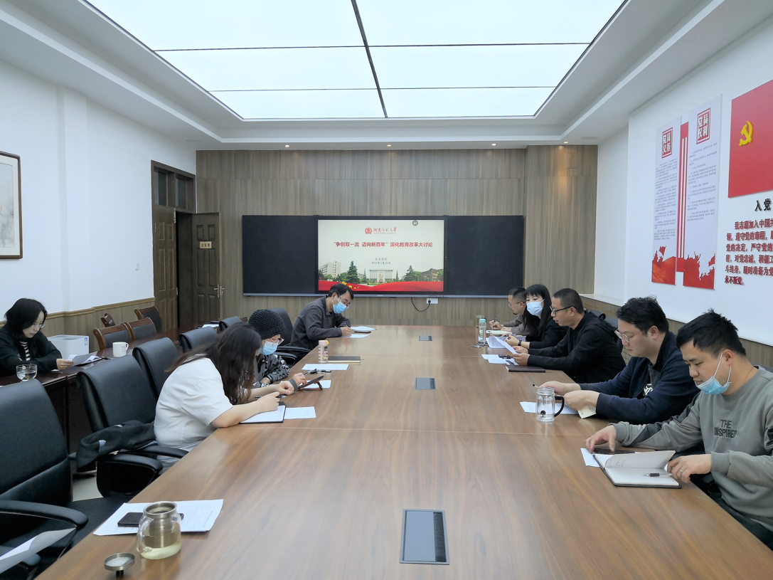 5月10日下午,美术学院在党员活动室开展了“争创双一流 迈向新百年”深化教育改革大讨论,学院全体党政领导班子成员、科级干部参加会议。会议由院长陈巍主持。会议围绕学院改革创新和事业发展,聚焦学科建设、人才培养、课程设置、社会服务、学生管理等五个方面开展。各教学科研管理岗位负责人和行政人员围绕“双一流”建设的重大意义和具体举措进行发言交流,结合各自工作梳理了问题清单,提出了诸多建议。陈巍通报了学院当前各项工作进度。他指出,全院教师要在思想上高度重视,切实增强紧迫感,以“时不我待,只争朝夕”的精神投入到“双一流”创建工作中。要明确目标、理清思路,众志成城、凝聚共识、埋头苦干、攻坚克难。他围绕把牢办学正确方向、优化学科布局提升内涵、强化学科交叉融合、打造一流师资、加强对外交流等重点方向对学院工作进行整体部署。学院党委书记孙红艳讲到,深化教育改革需要以党建赋能为途径,以培根铸魂为核心,以创新发展为目标。接下来,学院将结合学生培养和学科建设深入开展政治能力提升工程、思政铸魂逐梦工程、人才队伍集聚工程、组织建设牢基工程、优秀文化浸润工程、高质量发展攻坚工程,以党建引领发展,加快推进教学改革等各项工作