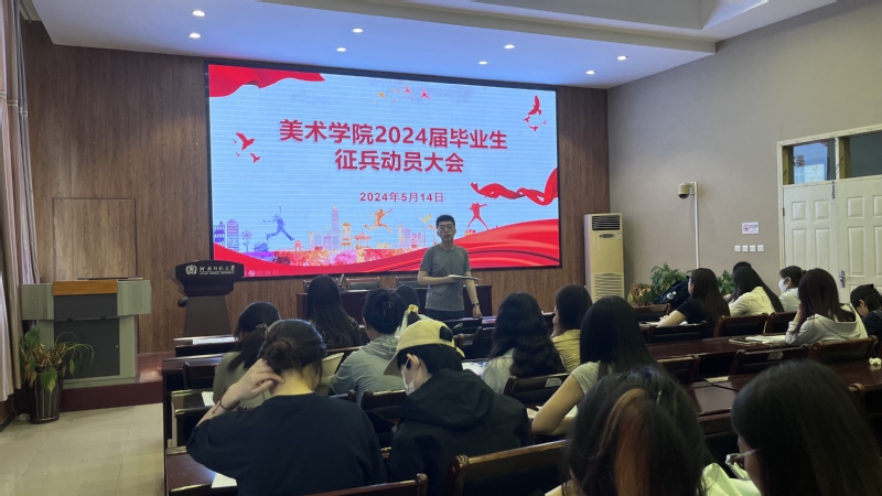 为做好2024届毕业生入伍政策宣传工作,鼓励毕业生积极参军入伍,美术学院于5月14日在崇美楼三楼多媒体教室...