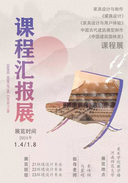 为了展示我院专业教学成果,激发学生学习热情,进一步提升课堂教学质量,1月4日,美术学院在崇美楼举办了环境设计专业《家居设计》与《中国建筑园林史》课程教学成果展。此次展览由美术学院2021级、2022级、2023级环境设计专业主办,指导教师分别为马蒙超、李峙钢。本次课程教学成果展共展出学生作品70余件。同学们充分结合...