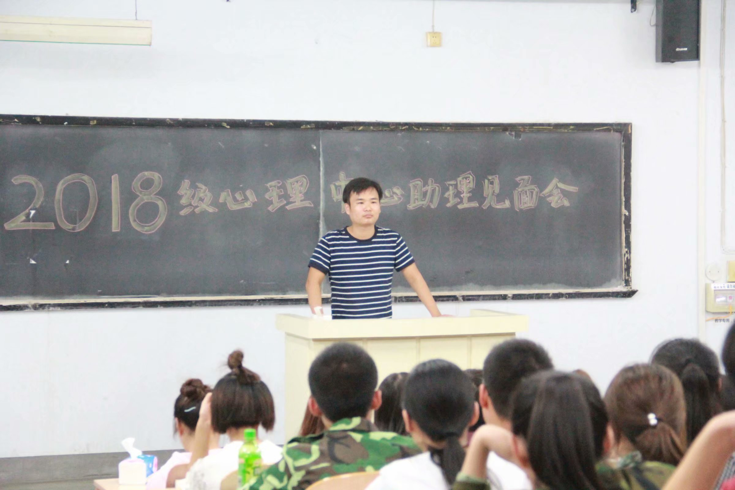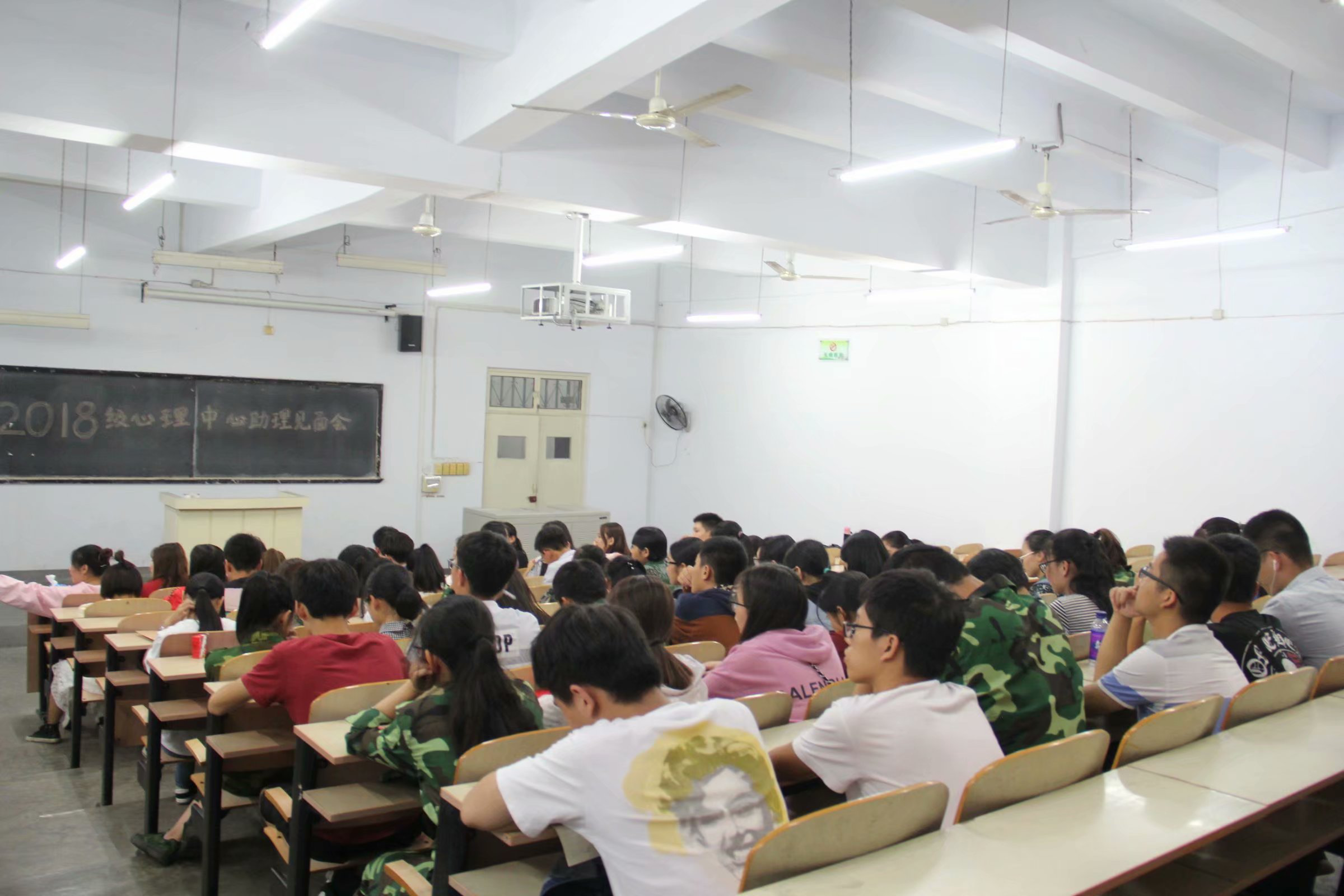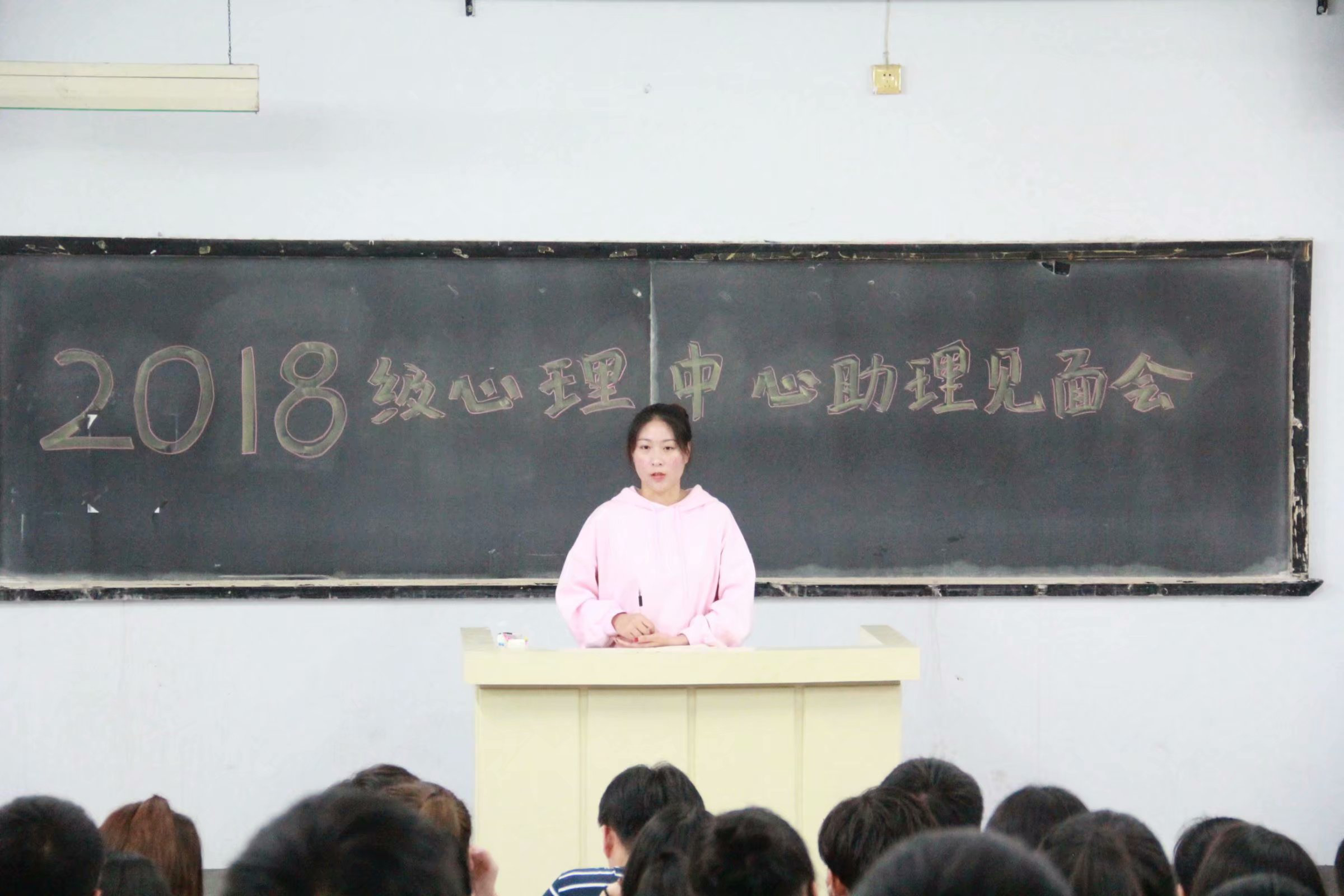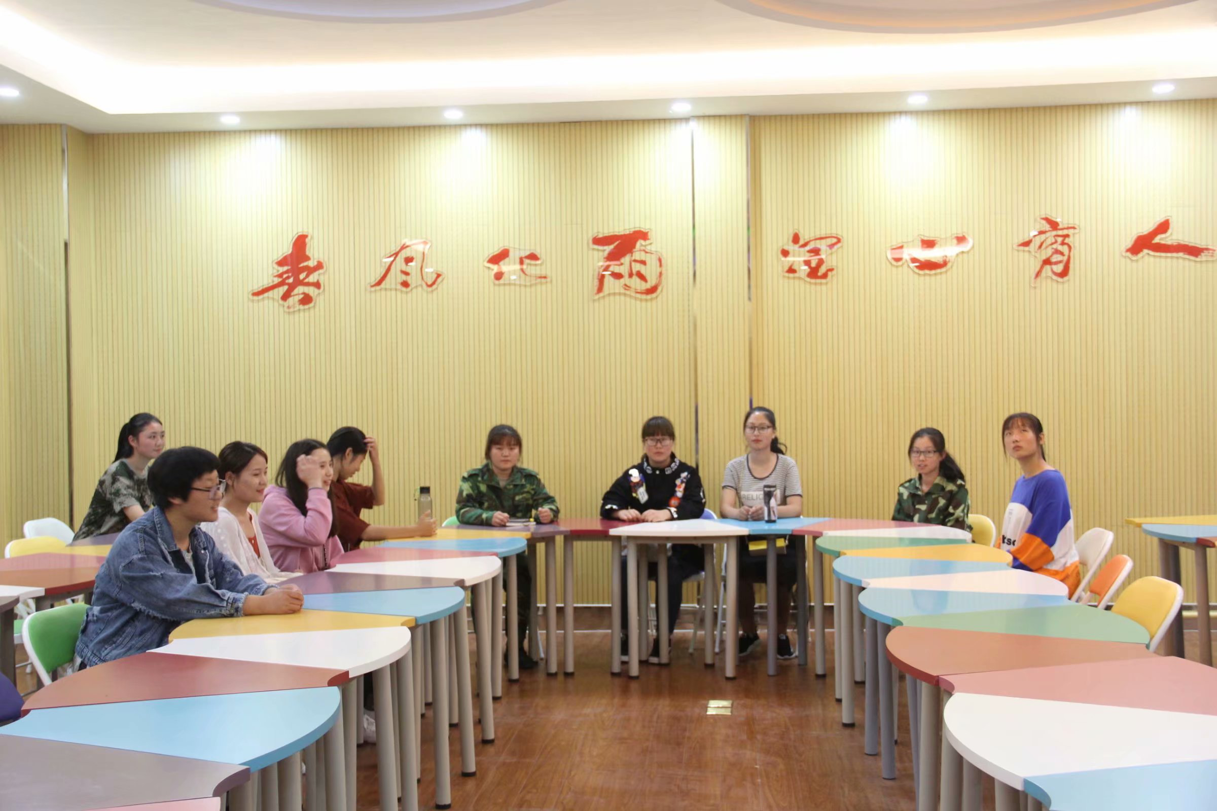 2018级心理健康教育中心助理见面会2018年9月21日心理健康教育中心在2018年9月21日召开2018级心理健康教育中心助理见面会,欢迎18级助理。见面会由主席刘禄丹主持,王富贤老师发言,会后由17级助理带领18级助理参观中心各个房间。