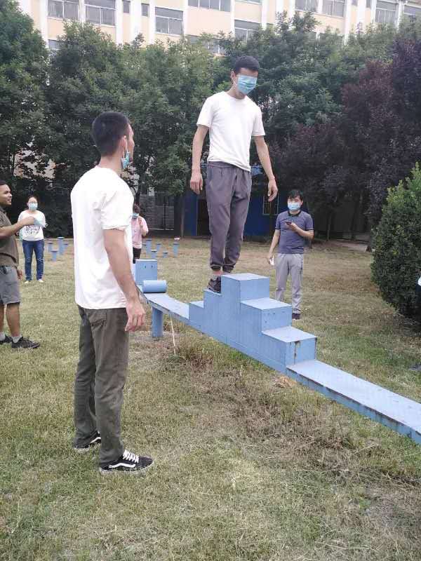 在心理健康教育中心专业教师带领下,同学们参观了各类心理咨询室,先后体验了沙盘游戏室、宣泄室、音乐放松室等所带来的乐趣。室外活动设计了“击鼓拍球”“不倒森林”“盲目障碍”“齐心协力”和“毕业墙”五个项目,同学们认真聆听老师对每个项目的详细讲解,并在老师的专业指导下,积极参与、通力配合,圆满完成了各项任务。活动中同学们深刻体会到相互信任和相互支持的力量,以及团结协作、步调一致、齐心协力、勇往直前的团队精神。