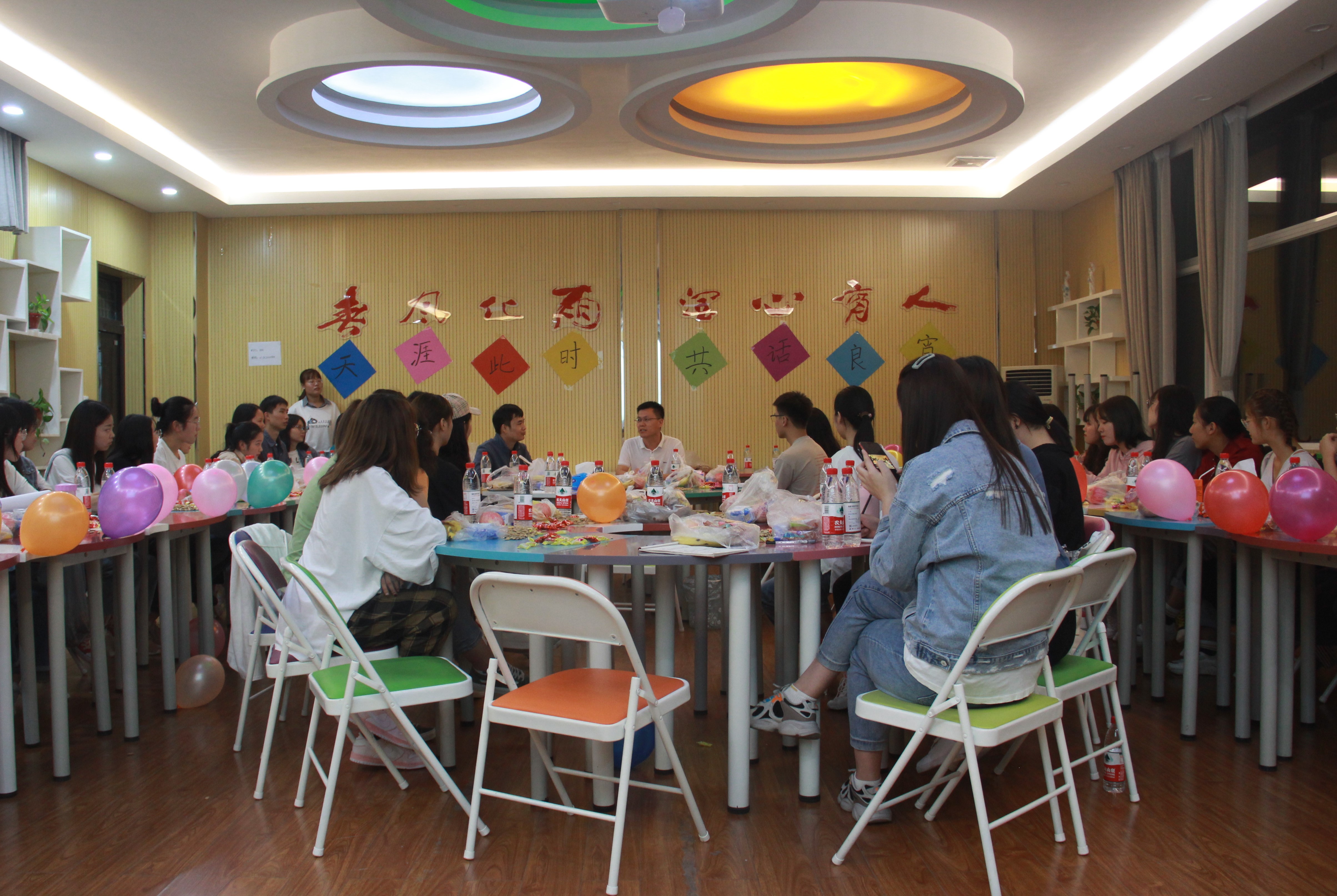 9月27日晚,心理健康教育中心在306录播室召开“迎双节”座谈会。中心主任陈勇、中心负责助理工作的王富贤老师及18、19级全体学生助理参加会议。