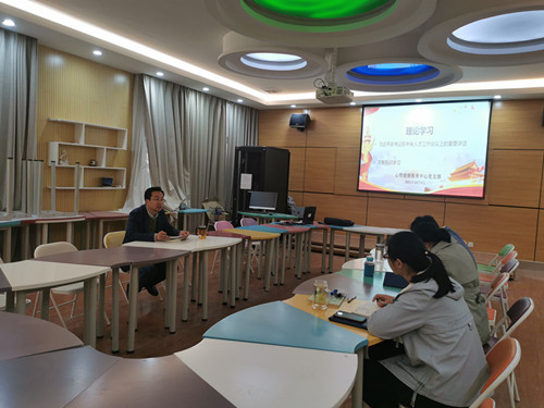 10月5日下午,心理健康教育中心党支部在306录播室组织理论学习,主要学习习近平总书记在中央人才工作会议上的重要讲话精神。会议由党支部组织委员、中心副主任周社刚主持。