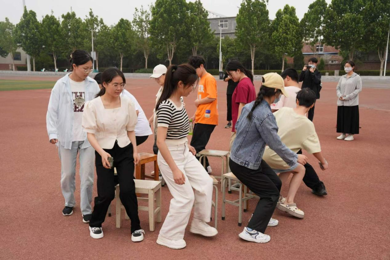 活动现场,学生们热情高涨,积极参与各项趣味运动项目。比赛共设置“桃花朵朵开”“抢椅子”“极速三子棋”“快乐投壶”和“六人七足”等五个项目。比赛中,同学们展现出极高的团队协作精神,通过沟通与配合,克服了各种困难,共同完成了比赛任务。这不仅锻炼了学生的身体素质,更在无形中提升了他们的心理素质,让他们学会了如何在压力下保持冷静,如何在团队中发挥自己的优势。每一项都融合了心理元素与运动技巧,让学生在轻松愉快的氛围中感受到团队协作与心理调适的重要性,让每一位参与者都能从中收获成长与快乐。
