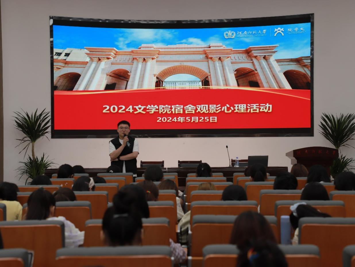 为营造和谐的宿舍氛围,促进大学生心理健康发展。5月25日下午,文学院在崇文楼一楼报告厅举办2024年宿舍观影心理活动。文学院2023级辅导员魏泽楷,学院学生代表共同参与观影,活动由2022级汉语国际教育专业白天宇主持。