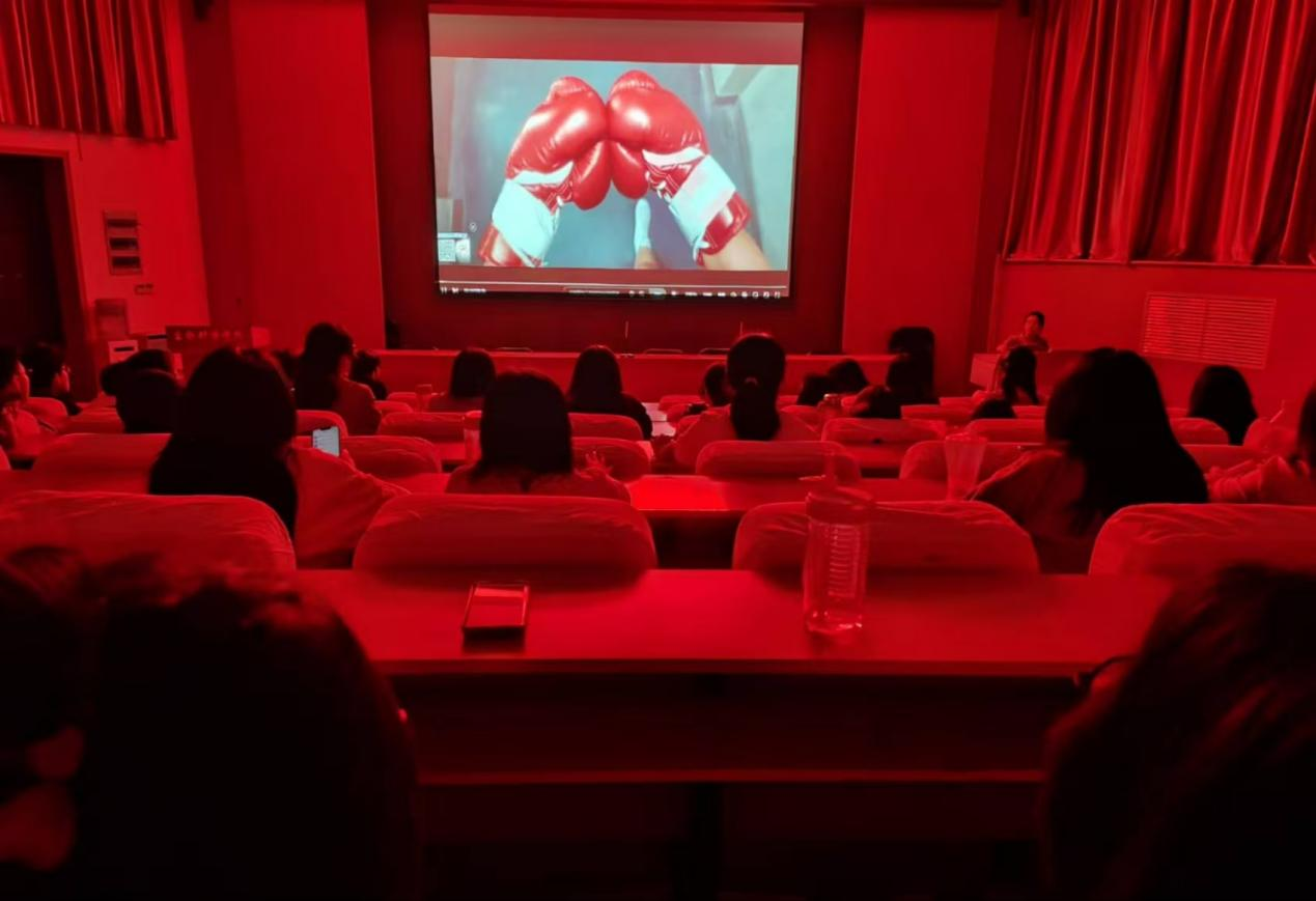 活动伊始,同学们集体观看影片《热辣滚烫》。这是一部充满温情和力量的影片,它讲述了32岁的乐莹自毕业后,一直待业在家中,精神颓废,却遭到妹妹的施暴,闺蜜与男友的背叛,在偶然结结识健身馆拳击昊坤后,克服接踵而至的考验开启滚烫人生的故事。故事的开始,乐莹在家里度过很长一段时间,她的生活单调乏味、缺乏新鲜感和挑战,这种生活让她渐渐失去了对生活的热情和动力。在一次偶然的机会,乐莹认识了拳击教练昊坤,因为他的出现,乐莹重燃对生活的希望。随着故事的发展,同学们看到了乐莹在昊坤的帮助下,她开始积极面对挑战,努力克服自己的局限,不断突破自我,展现出了坚韧不拔的品质。这个故事展现了乐莹在拳击训练中的成长和进步,也展现了她在生活中的改变和成长。最后,影片以乐莹克服困难,勇敢追求梦想的故事结尾,开启她滚烫人生的新篇章。