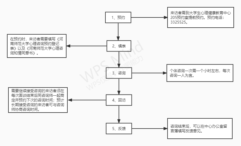 1、线下预约:工作时间到西校区新联楼205预约接待室进行咨询预约。