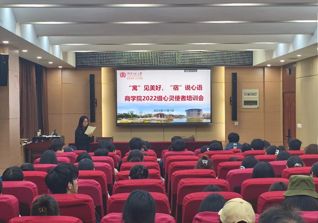 为增强心理健康工作者的身份认同、工作理解和服务水平,提高心理委员、宿舍长的工作能力,11月4日下午,商学院于学院119报告厅开展“‘寓’见美好,‘宿’说心语”心灵使者培训会。学院党委副书记马淑明、各年级专兼职辅导员、心理委员及宿舍长参加了会议。