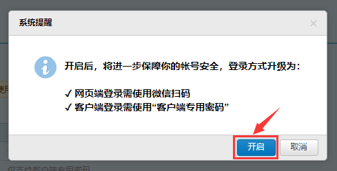 注意:开启安全登录后,个人邮箱将会被自动退出,出现以下页面,请使用微信扫码再次登录。