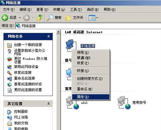 方法:开始菜单 —》 设置 —》控制面板 —》 网络连接 —》 本地连接(右键属性) —》 常规—》 Internet协议(TCP/IP),把自动获取IP地址和自动获得DNS服务器地址选中,确定即可。(以 WindowsXP 系统为例):点(左下角)开始 — 设置 — 控制面板 — 网络连接,右键单击 “ 本地连接 ” 的图标,选择 “ 属性 ” ,打开 “ 本地连接属性 ” 窗口。