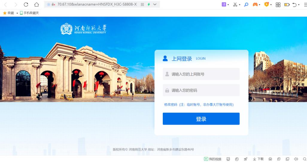 打开浏览器,访问http://开头的任意网站(非https://),如http://www.edu.cn/,即会出现如下图所示的上网认证页面。输入账号密码即可登录校园网。