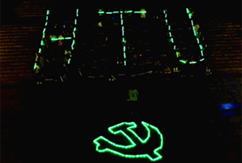 活动中,在场师生用荧光棒在地面上摆成了党徽的图案。在工作人员的指挥下,师生们全体起立,一起挥舞着荧光棒合唱《歌唱祖国》,嘹亮的歌声点燃了同学们的热情,将现场气氛推向高潮。随后,代表伟德官网下载苹果版的“HTU”图案和代表团徽的“五角星”图案在同学们手中的荧光棒下一一展现。同学们配合默契,井然有序地用荧光棒拼成了一系列图案,给大家带来了不一样的视觉感受。活动最后,所有同学挥舞着荧光棒跑向党徽。“这样的活动很有意义,激励我们要努力做一名优秀的团员、党员。”现场参加活动的一名同学认真说道。