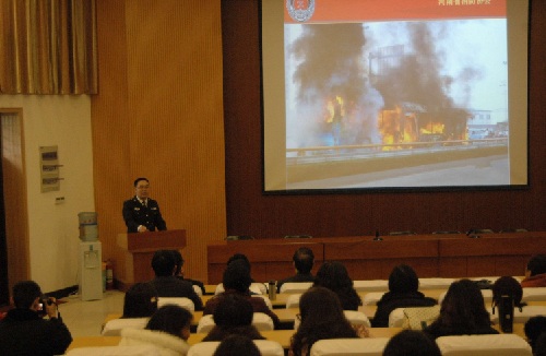 为贯彻落实校保字〔2016〕2号文件关于《2016年度冬春火灾防控工作方案》的通知精神,充分做好生命科学学院消防安全工作,有效预防和避免学院火灾事故发生,11月29日下午,生命科学学院工会邀请河南省消防协会教官杜通在生物报告厅举行了消防知识讲座,并在生物楼前进行了防火演练。校保卫处相关负责人,学院党政领导,全体教职工及学生代表200余人参加本次活动。活动由学院副院长兼工会主席李建军主持。