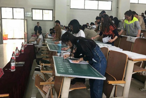 篆隶楷草行,挥洒翰墨情。4月21日中午,由政治与公共管理学院团委学生会宣传部举办的第四届三笔字大赛在东教B103教室拉开帷幕。学院部分教师及辅导员老师担任此次比赛评委,学院学生广泛参与其中。 本次比赛分为A、B、C三个赛区,参赛学生在限定的15分钟内轮流进行毛笔、钢笔、粉笔字三种笔法的书写。毛笔字比赛中,参赛学生围绕“篆隶楷草行,挥洒翰墨情”的主题,挥毫泼墨,书写心中感悟,参赛作品囊括楷书、行书、草书、篆书、隶书5种书法形式。钢笔字和粉笔字的书写内容由主办方现场发放,参赛学生在舒缓的音乐中认真书写,字体刚劲有力,横平竖直。评委们走到每个选手身边认真观察现场打分,并给予相应的建议和指导。 书法教师陈德乐对本次比赛进行点评,他在肯定同学写字热情的同时,也提出个别学生没有准备齐参赛工具、书写不规范等问题,希望学生能沉心静气地练字,传承中华民族汉字文化。 本次三笔字大赛的举办,有利于丰富学生课余生活、增加学生对我国汉字文化的了解,也有利于提高学院师范生的基本技能,提升其文化素养和审美追求,同时也为迎接“三笔字”校级比赛做好准备。 (政治与公共管理学院 付高言 单鹏帅)